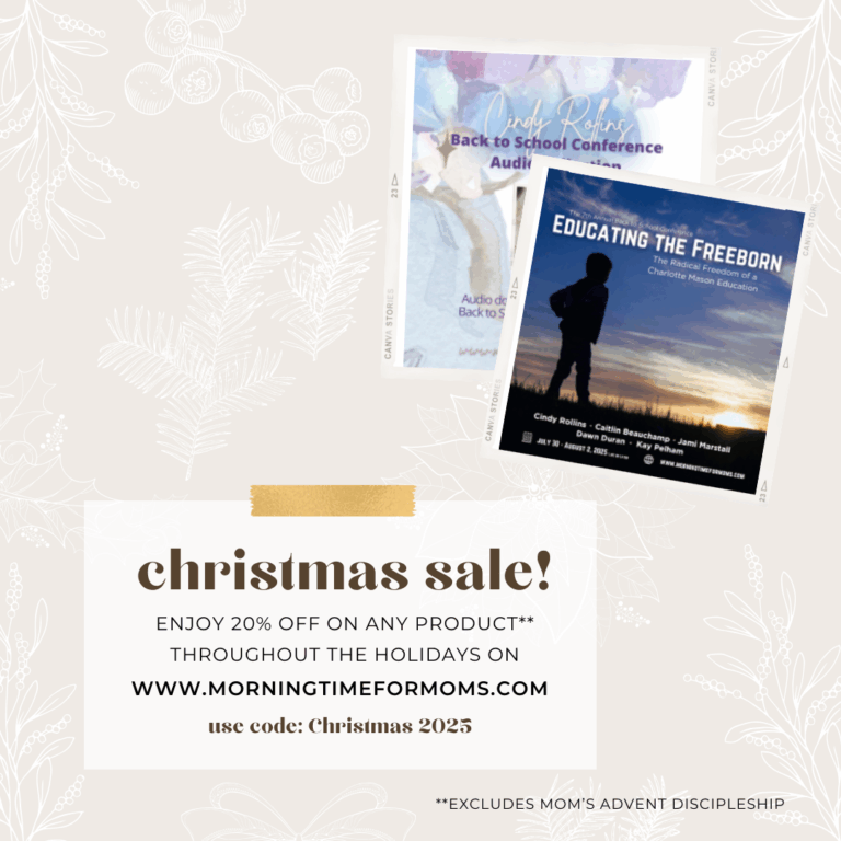 Passing the baton to the new generation of mothers is the heart of my work, with both The Literary Life Podcast and The NEW Mason Jar with Cindy Rollins. I’d love to have you join me!